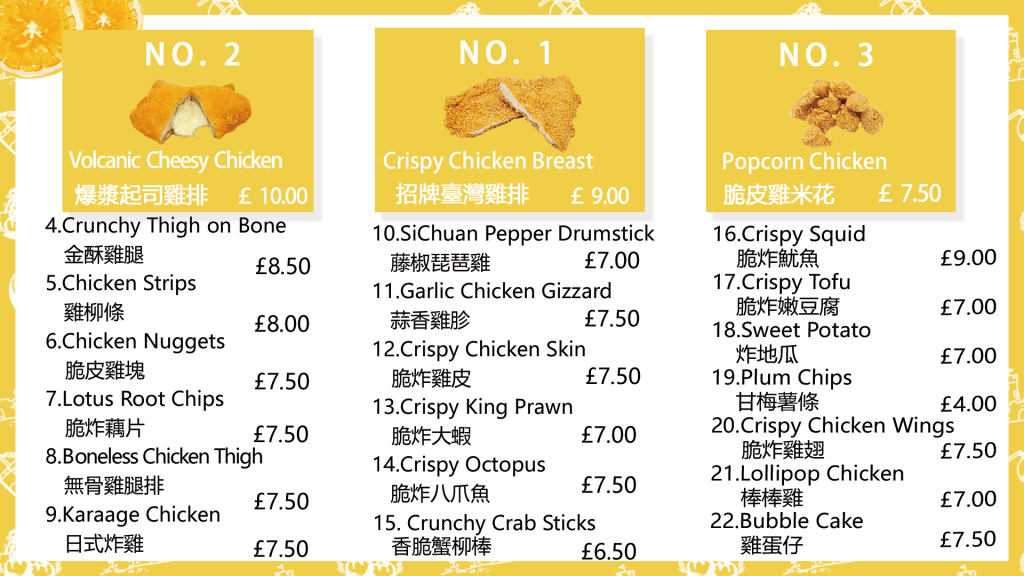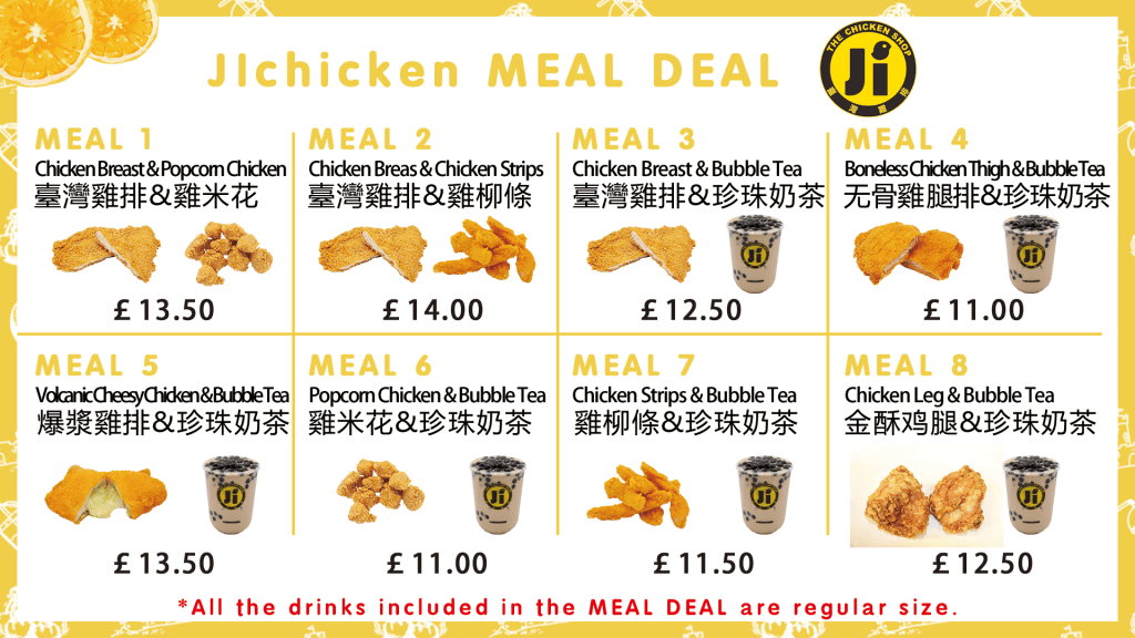 Ji Chickens is shaking up the fast-food fried chicken industry to bring their customers the best fried chicken in the market. We’re currently in the process of expansion and aim to become the one and only fried chicken brand using traditional methods from Taiwan in the UK. Our brand is based on a love for tasty fried chicken on the go. We have a number of branches currently operating in the UK that are delivering quality products to our customers. We’re proud of our unique product and will never stop improving ourselves.